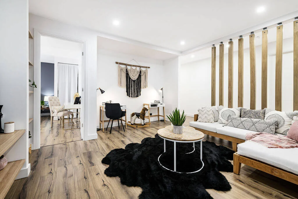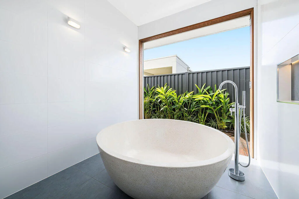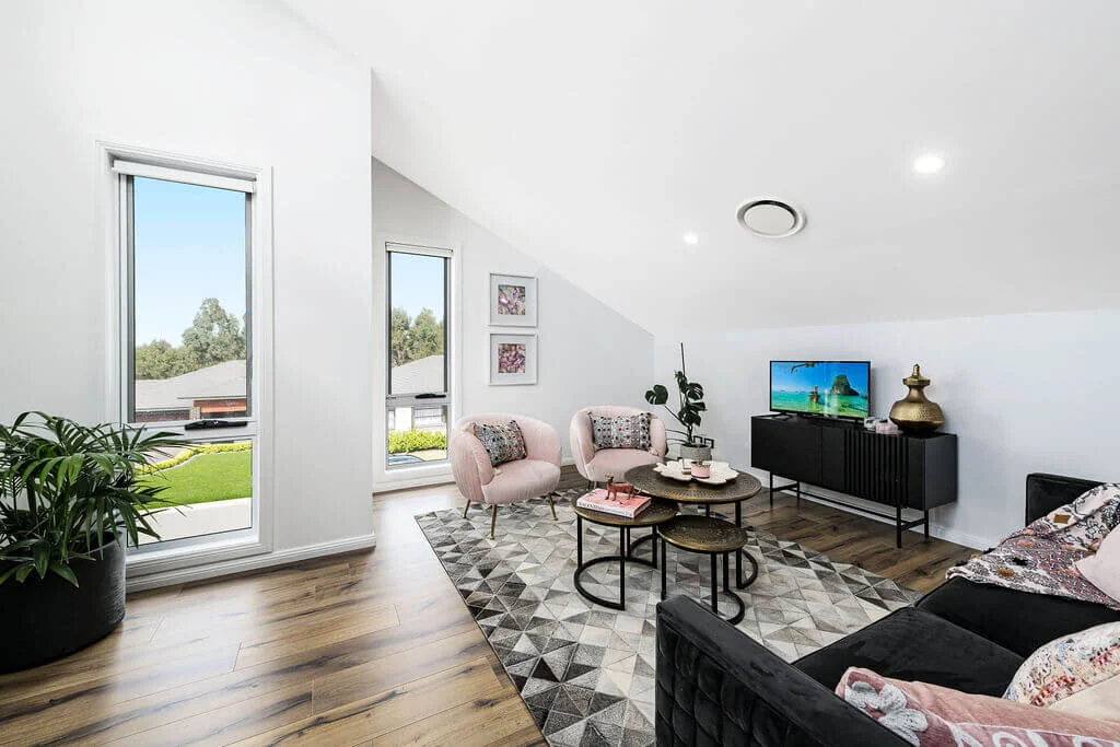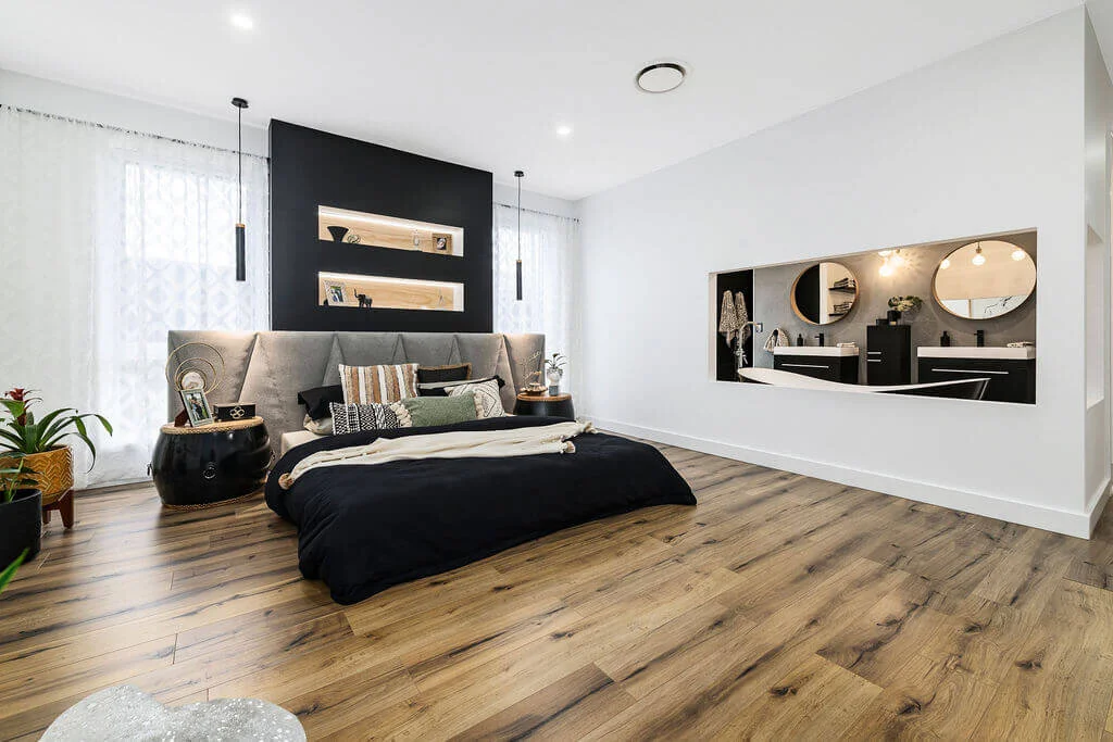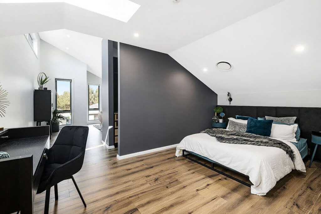Not only the sleek design was taken into consideration but also the comfort aspect of the home. The interior includes ducted air conditioning, heated floors in all the bathrooms, & an extra layer of insulation added to the wall sacking for ultimate comfort.